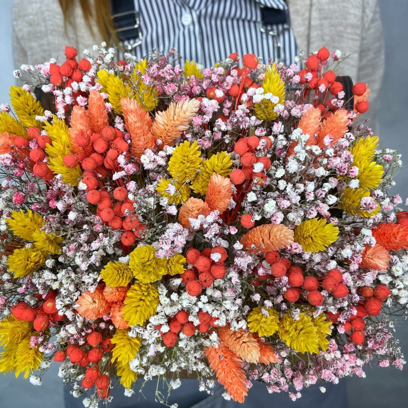 Огромное спасибо за такую красоту! Букет пришёл точно в срок, цветы свежайшие, композиция шикарная — даже лучше, чем на фото. Получательница в восторге! Теперь только к вам 💐